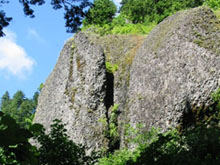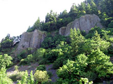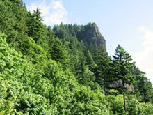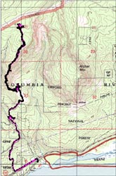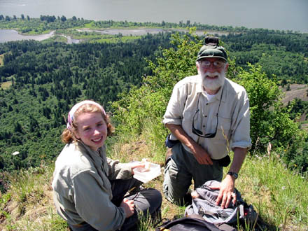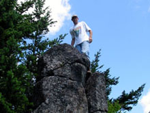 | Emily and Mac rest after the way to top is clear. | The view down from the rest spot. | Mac, on his way out to the point. |