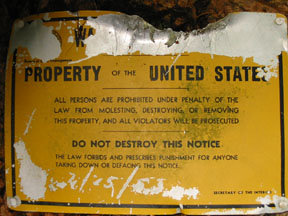 We bushwhack our way down the back side, and encounter this sign. It looks like a bear scratched it, sometime since 1953. |