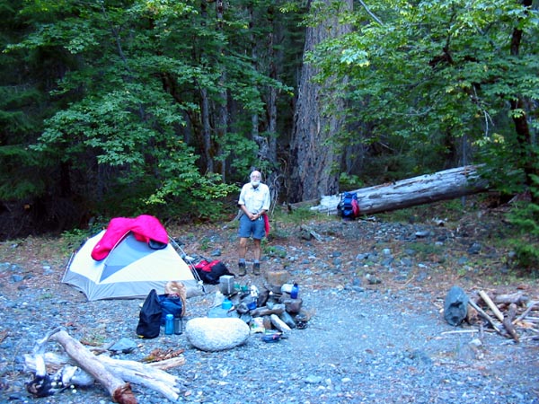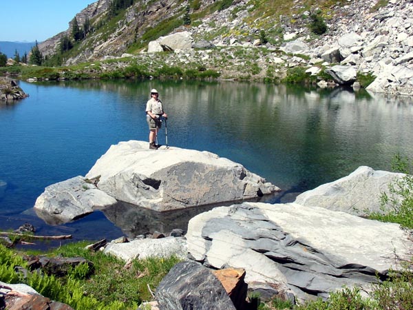 Reaching Little South Fork Lake, we made camp on a small peninsula,