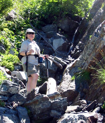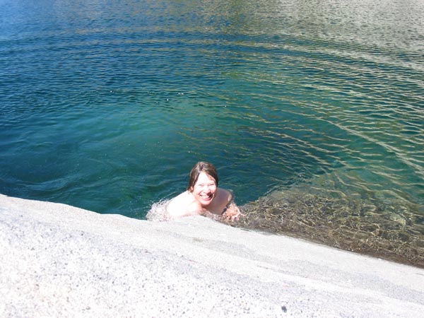 Ellen is tempted to dive in from this well-placed cube of granite.